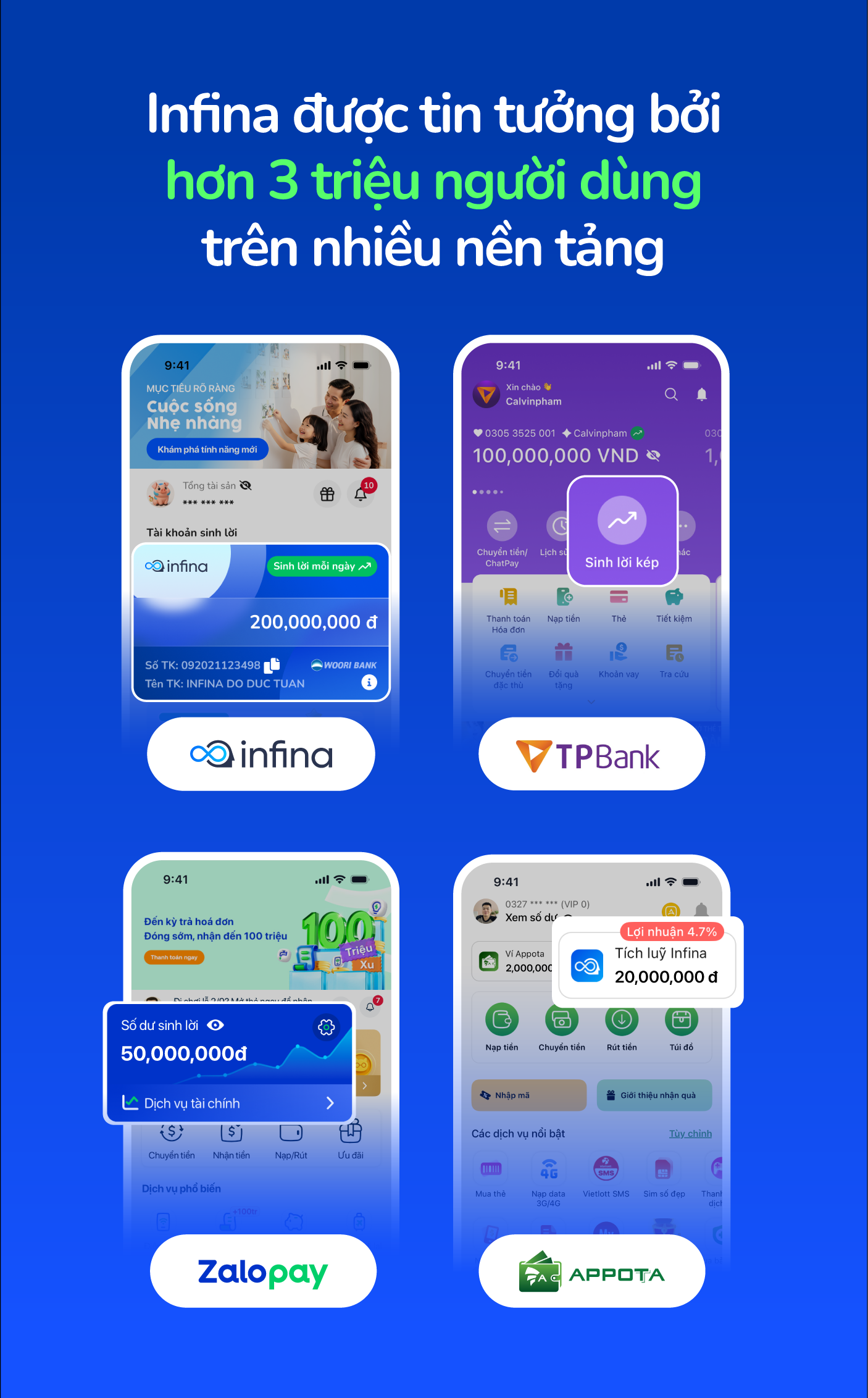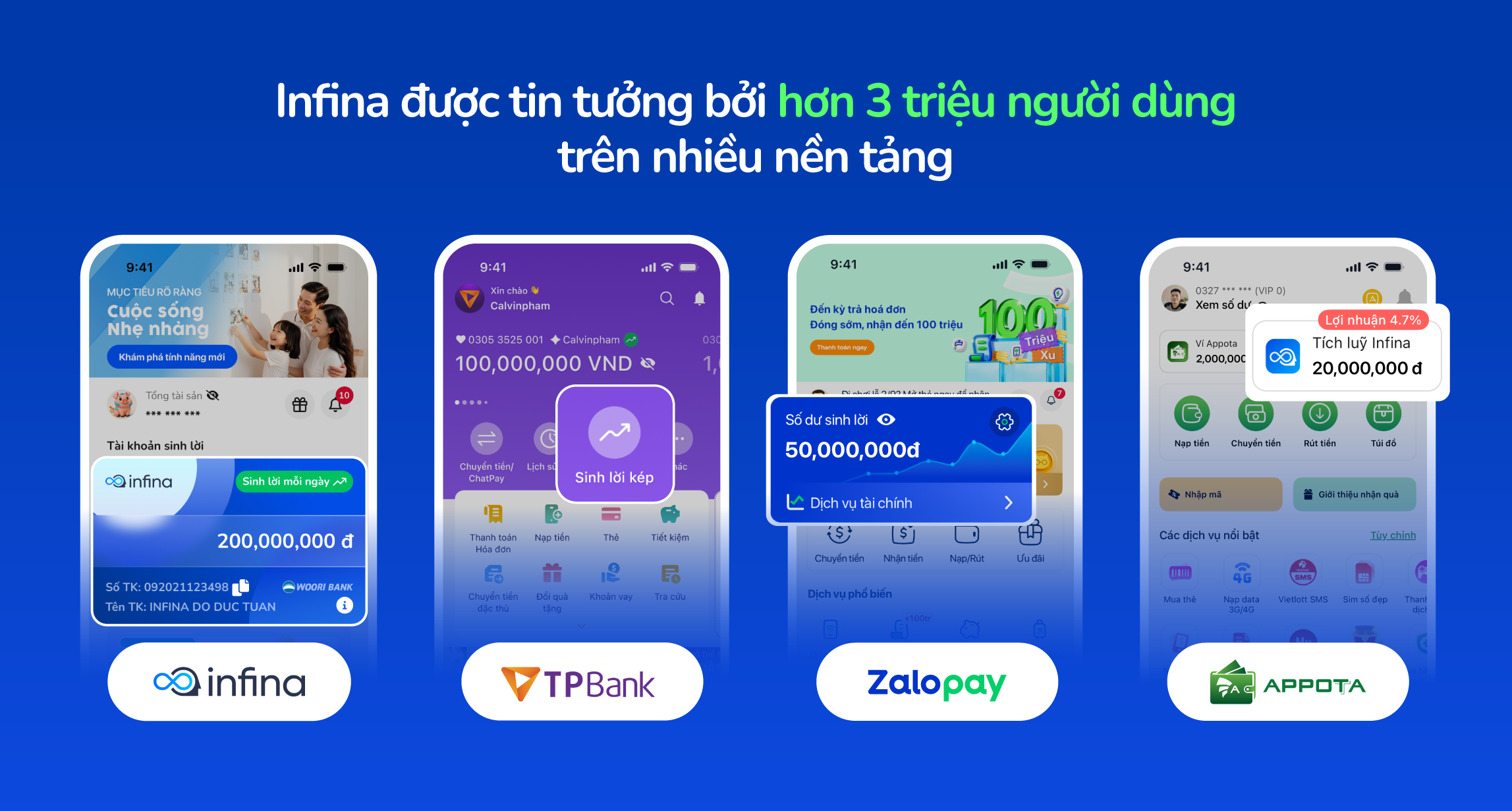 Tài khoản sinh lời Infina giúp ứng dụng của bạn tăng trưởng người dùng hàng tháng và doanh thu